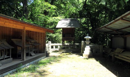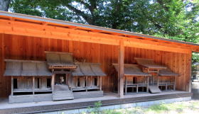 本殿の脇の蓋殿内に並ぶ社殿