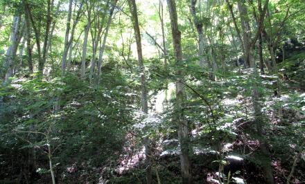 太陽光が入りやすい明るい山林風景だ