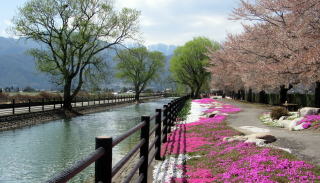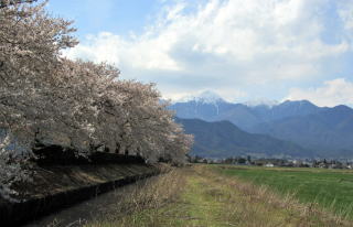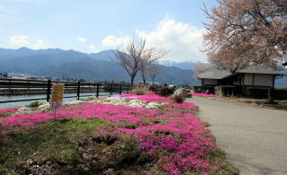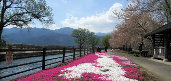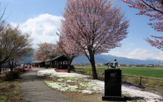 なかでも安曇野市三郷明盛にある「じてんしゃひろば」は、春には桜並木やシバザクラが美しく咲く河畔公園で、サイクリングの拠点となっています。