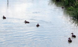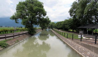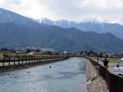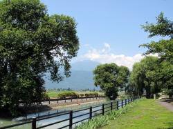 拾ケ堰は、豊科南部から穂高まで安曇野の中心部を縦断していますが、河畔・流域には自転車道が整備されています。松本市島内の拾ケ堰の畔から始まって、豊科、三郷、堀金を経て、穂高公園辺りまで、15キロメートルほど続く自転車・遊歩の専用道路です。