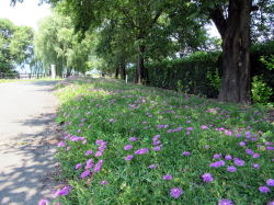 上掲のシバザクラが繚乱する「じてんしゃひろば」の写真は2018年4月12日の取材で撮影したものです――桜は例年よりも1週間以上も早く満開になり、散り始めていました。この日も調布市からクルマに自転車を積んできたロードバイカー(60代後半だとか)が、ここで支度をしてサイクリングに出発していきました。「一度ここに来たかったんですが、夢がやっとかないました」と目を輝かせていました。