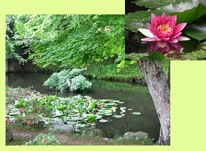 ▲境内の池の蓮は6月半ばから咲き始める