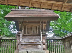 参道から拝殿に登る石段の手前に、南に向かって踊り場のように開けた場所があります。