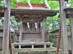 常楽寺の境内に上る石段の途中に、別所神社に導く杉木立の細道があります。小径は、 東に張り出した尾根の先に向かっています。尾根の先端の高台に別所神社があります。