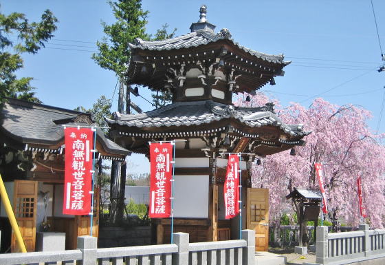 この御堂は、別所温泉バス停と観光案内所の目の前にあります。春には枝垂れ桜の花がみごとです。