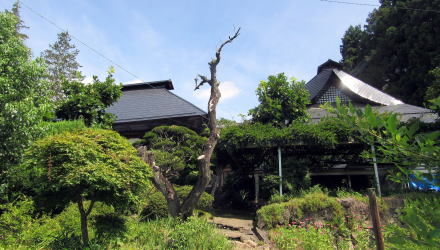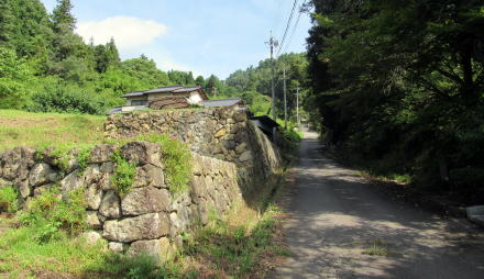 保福寺道跡から山腹高台に位置する大法寺に向かう参道は斜面をのぼる小径です。地形を探りながら参道を歩いてみると、道の両脇には棚田跡のような段郭が連なっています、往古ここは天台密教の修験霊場で、大法寺の塔頭支院が並んでいて、それらは宿坊だったのではないかと推定できます。
