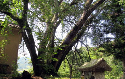 子檀嶺岳は往古、現在のように樹林におおわれておらず岩壁が露出してそびえていたそうですが、それはいかにも密教修験霊場の趣きです。古代には、天台密教寺院としての大宝寺は子檀岳の南麓にあった可能性もあるでしょう。