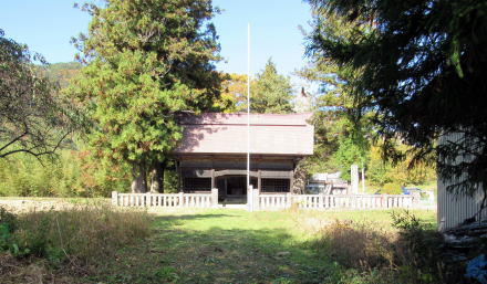 ▲境内西側の山林の背後には麻績川の谷と岩殿山の尾根が迫る