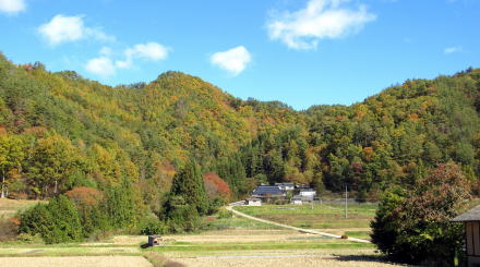 ▲三館だが豊かな農耕地が広が穏やかな集落
