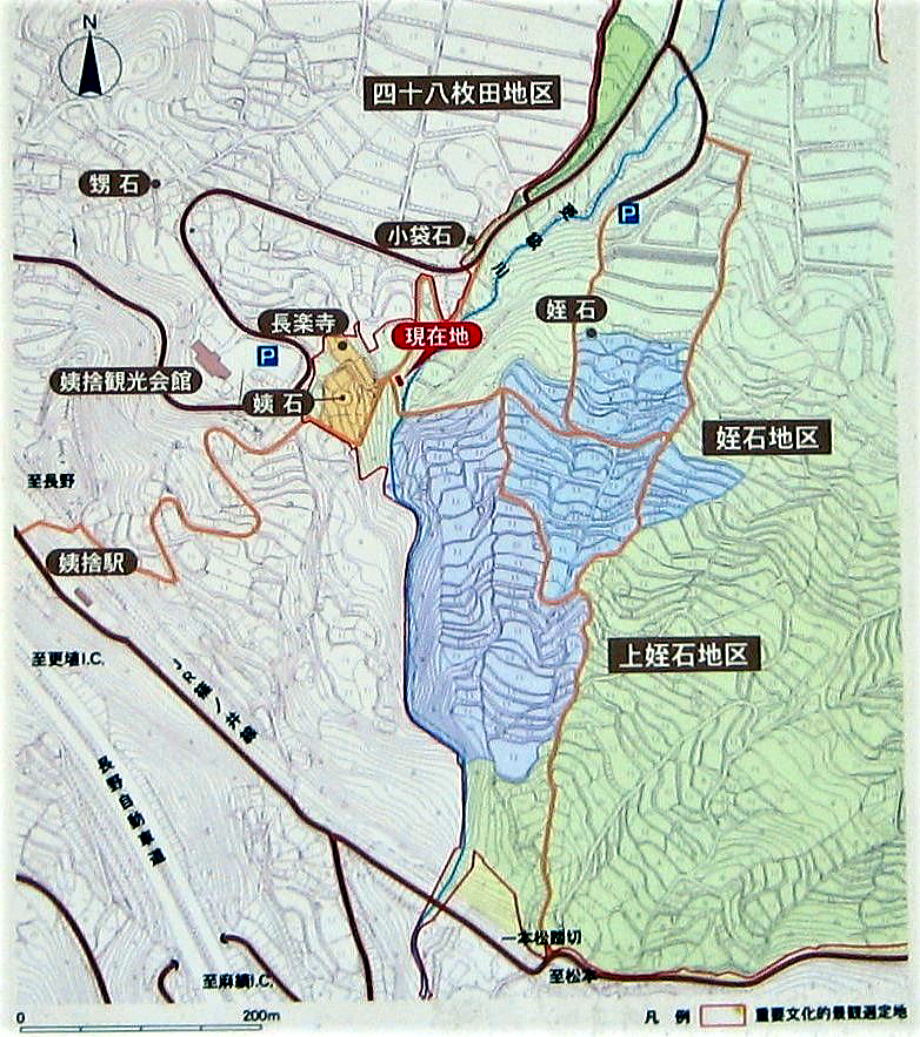 それにしても、姨捨の棚田と長楽寺は、山腹斜面に点在する大きな凝灰礫岩塊も含めて、一体的な風景をなしています。棚田と名月の里は、和歌や俳句の巡礼の聖地ともなっています。