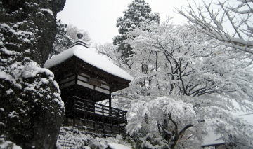 千曲川と善光寺平を見おろす姨捨山の中腹に、名月の里、姨捨の棚田地帯があります。風光明媚な名月の里はまた多くの俳人や歌人、文人墨客を呼び寄せてきました。長楽寺の境内には夥しい数の句碑、歌碑などが並んでいます。 春から初夏の田植えの時期には、棚田の水面に無数の月が映ります。秋の紅葉も冬の雪景色もみごとです。