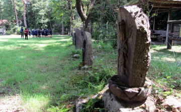 さて、観音原は、南北約40メートル、東西約80メートルほどの長方形の草原です。この草原の西側の縁には弘法大師像を中心に33体、南の辺には34体、東側には馬頭観音など小石造が密に70体、北辺には33体、合計187体の石仏群が配置されています。