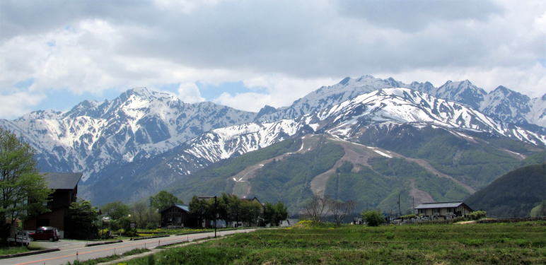 松川と姫川の合流地の河岸段丘が塩島地籍で、その西側すなわち松川下流部の段丘に新田が開かれ、そこに千国街道の宿駅を兼ねてつくられた集落が塩島新田村ということになります。
