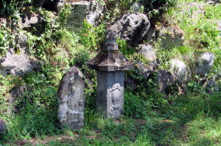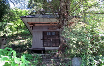 近くに観音原石仏群があるのに、集落近くに寺院がないのは、いかにも不自然です。そう考えて周囲をめぐったところ、伝行山の頂と麓に社殿や石塔・石仏群が集まっていて、塩島新田の人びとが信仰と結びついた祭事をおこなってきた場所が見つかりました。「伝行山下堂」と呼ばれる、かなり有名な場所らしいです。