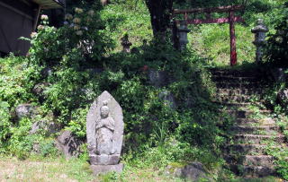 そこに立つ説明板によると、この集落出身の横澤本衛という実業家で大資産家が、伝行山と呼ばれる丘の頂に稲荷社を造営し、麓から社までのぼる石段をつくったのだとか。また、境内に立つ徹然が植えた枝垂桜は、幹の太さから見て(樹齢120年前後か)、明治期に植樹されたものにょうです。徹然という名前から、僧侶なのでしょう。
