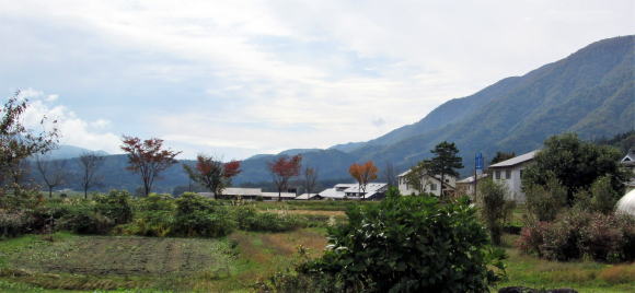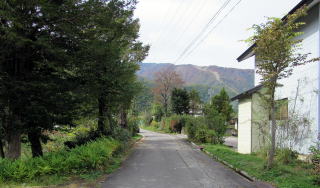 さて、私は飯田神明宮から南西向きの農道を歩き、古民家を探しながら、犬川河畔のバイパス道路へと向かいました。その道は、白馬美麻線(通称オリンピック道路)から五竜スキー場に通じる道です。西には五竜岳と遠見連山が迫っています。