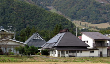 国道から犬川に沿って五竜スキー場に連絡する道路沿いということで、農村風リゾート地の雰囲気が漂う集落です。観光客への対応を考慮して補修・改修された古民家が目につきます。
