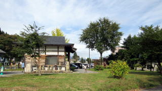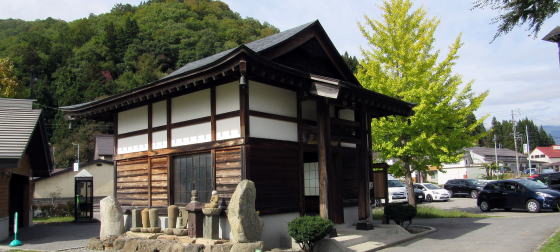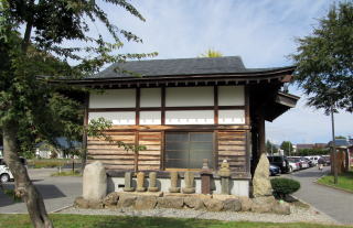▲道の駅白馬の敷地内南端にある十三仏堂: 修築されたお堂