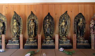 お堂脇の説明板によると、仏像群は相当に熟達した仏師の手になるもので、寄木造りで漆塗金箔、玉眼嵌入が施された精巧な造りだとか。