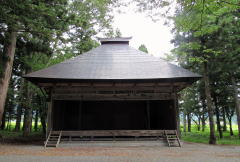 ▲端正で均整の取れた造りの神楽殿