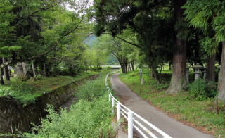 ▲神社脇を流れる谷川は農業用水となっている