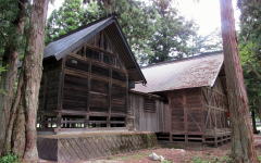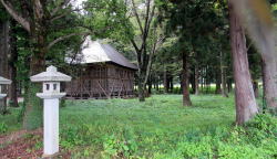 明治以降の軍国化政策と国家神道イデオロギーによって、この神社もまた大和王権系の神社信仰の形式枠組みが「上から」被せられたのでしょう。しかし、戦後の深刻な反省から、神道思想の影響を取り除き、祭神を水神様だけにしたものの、社殿様式が直線的な形で残ったのではないでしょうか。