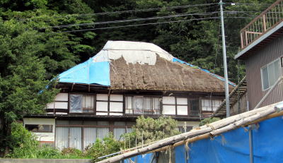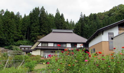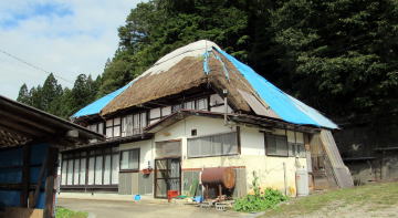 野平集落に現在残されている茅葺古民家(主屋)の特徴を見てみましょう。茅葺屋根の東側から南側にかけて――南と西を切り上げたものもある――切り上げて陽の光や風を通しやすくした造りと、屋根の深さが四方一様のものとがあります。