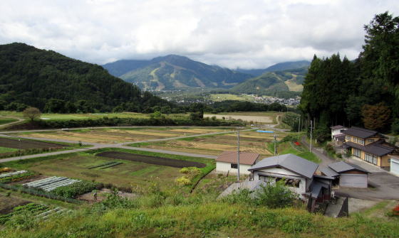 この谷を降りた姫川の対岸にある塩島新田は、この村よりも100年ほど後になって形成されたそうです。塩島集落は、それよりも古く、塩の道の中継地だったようです。そういう村がつくられたのは、暴れ川の姫川や松川による水の脅威が、気候変動あるいは治水技術の進歩である程度抑えられるようになったからでしょう。