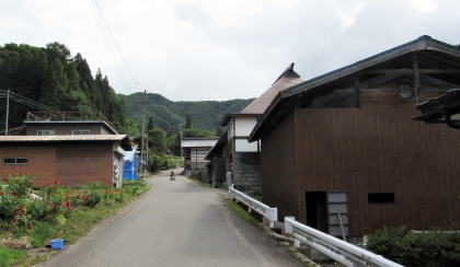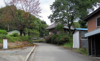 野平の谷間を集落に向かってのぼる道は3本あります。私は一番南側の道をのぼることにしました。3本の道は村の中央部で縦(南北に)結びついて1本になって、家並みの東端まで急坂が続いていきます。まずこの坂を村落の端まで歩いてみることにしました。
