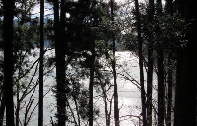白馬村佐野から青木湖まで道のりは2キロメートルそこそこの山林あるきです。しかし、今よりも寒さが厳しく装備もずっと劣っていた江戸時代までの旅人は、冬場のこの峠越えはまさに「命がけ旅」だったのではないでしょうか。 |