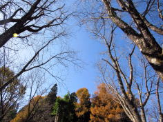 ▲山桜の並木の梢を見上げる