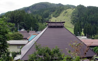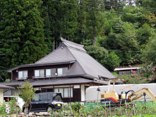 ▲古民家の背後に尾根の背が迫っている