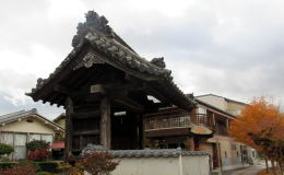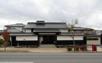 商工会館の少し先には、田中宿本陣跡地があって、重厚な薬医門が今でも残されています。残念なことに往古の遺構はこれだけで、本陣の痕跡は見つけられませんが、門の前に佇んで、往時の街の様子を想像してみました。