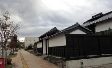 それが田中商店街で、旧北国街道田中宿の跡にできた真新しく美しい街区景観です。街を貫く道路はもともとは北国街道でした。鉄道を利用するなら、しなの鉄道田中駅で降りてください。