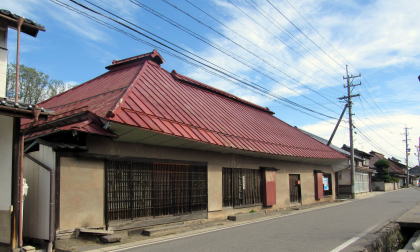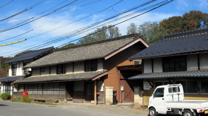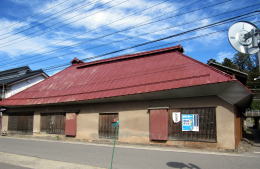 上掲の赤いトタン屋根の古民家は、縦繁格子戸(旅籠屋形式)が両端に配されていますが、開口部を少なくして、柱を塗り隠す真壁となっています。つまり、江戸時代からの町家様式を残したまま、養蚕業に適応した折衷様式となっているわけです。