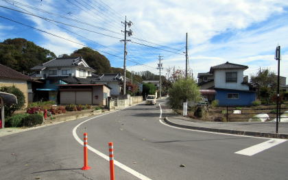 ▲心光寺お堂前で道は鍵の手になっている