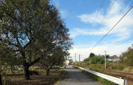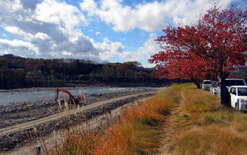 ▲堤防(築堤)に植えられた桜並木は紅葉が美しい(撮影:11月半ば)