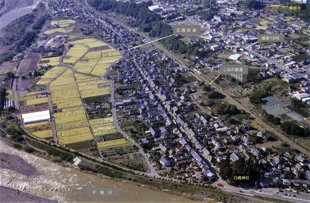 海野宿 空撮写真 出典:東御市教育委員会発行の観光案内資料「信州北国街道 海野宿」