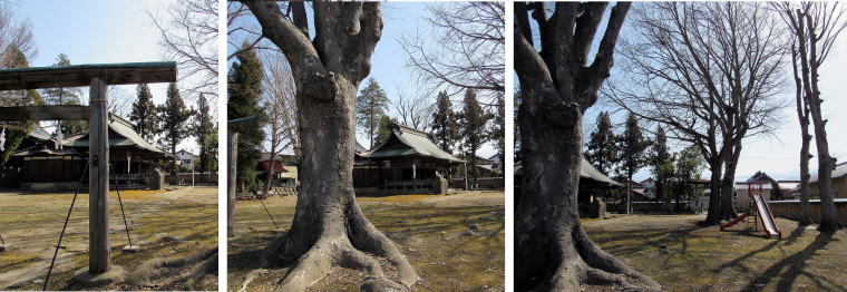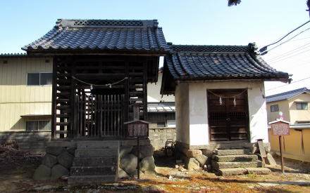 【天満宮】![]() ▲天神社の拝殿は重厚な入母屋造りで屋根は銅板葺き(南向き) ![]() ▲天神社の社殿は、右から拝殿、幣殿、本殿が配置・連結されている ![]() ▲天神社の前から大鳥居と街道を眺める 【八坂社と養蚕社】 ![]() ▲天神社の右奥に並ぶ八坂社と養蚕社 ![]() ▲隣り合って並ぶ八坂社(右)と養蚕社(左) ![]() ▲養蚕社の社殿はは覆屋(蓋殿)のなかに安置されている 【白山比咩社】 ![]() ▲天神社の左手みあって、2棟の古い土蔵を背景に立つ白山社の社殿 ▲社殿の向かって左前にある小さな石塔が鹿島社 |
