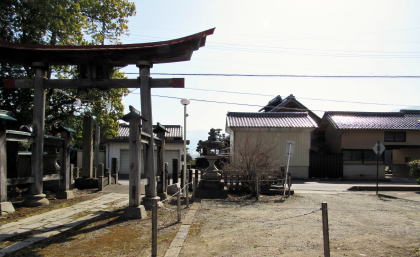 ![]() 中町のランドマークとなっている天満宮境内の入り口と大鳥居 ![]() 蚊里田社と伊勢社の前から境内を眺める |