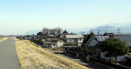 その後、17世紀半ばから18世紀半ばにかけて、松代藩は千曲川と犀川の水系・流路を大がかりに改造する河川土木工事をおこないました。その結果、千曲川水系が東岸を浸食・攻撃する力が抑えられ、福島では宿場街を移転するほどの大水害はなくなったようです。しかし、その分、千曲川西岸の水害の頻度と規模が深刻になったようです。
