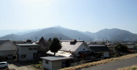 集落を見おろす堤防上の庚申塔
