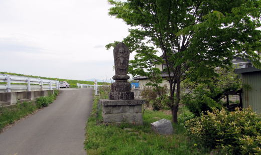 ![]() ▲やや鋭角に曲がる横町の鉤の手道。街道はここから北に向かう。 ![]() ▲幕末まで、街道はガードレールから緩やかに右折し河川敷に向かっていた ![]() ▲祠型の庚申塔: 今は街道標柱となっている ![]() ▲馬頭観音脇を往く小径が街道の遺構 ![]() ▲馬にまたがる三面八臂の馬頭観世音 ![]() ▲現在の堤防内の河川敷: 渡し場は画面の中央辺りにあった |