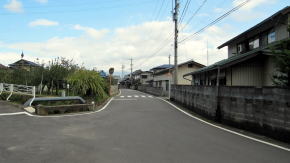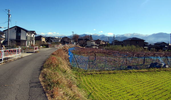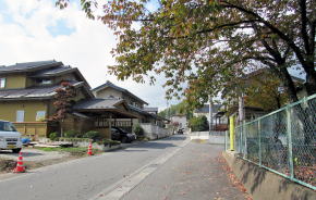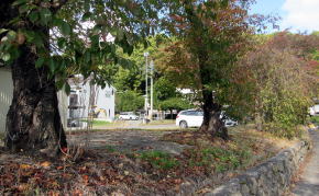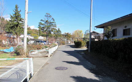 飯山街道北脇のフェンスの辺りが神代村庄屋跡