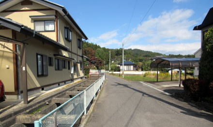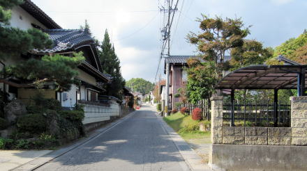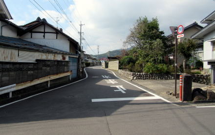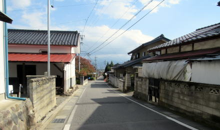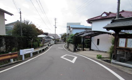▲旧飯山街道は圓徳寺を過ぎると、まもなく旧石村に入る