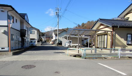 ▲立町通りを西(右)に折れて石村に向かう旧飯山街道(T字路)