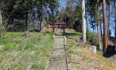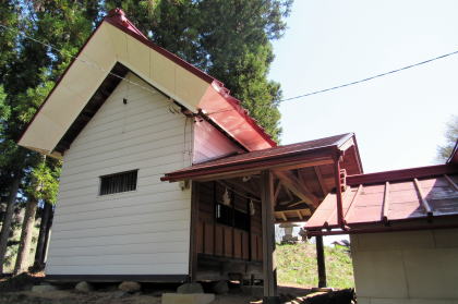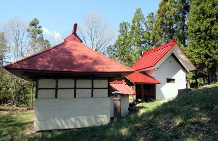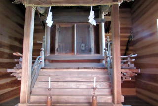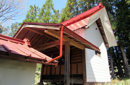 ![]() ▲果樹園が広がる斜面を下って穂長神社の西側から近づく ![]() ▲比高3~4メートルほどの段丘の上に境内がある ![]() ▲段丘の縁は急斜面で、参道石段はそこをのぼる ![]() ▲寄棟造りの拝殿は神楽殿を兼ねていて、床面積が大きい ![]() ▲拝殿は神楽殿(舞殿)も兼ねているので内部は広い ![]() ▲参道石段を登り切って振り返ると、宮前の集落が見える ![]() ▲拝殿東脇から境内の様子を眺める ![]() ▲拝殿の後ろに渡りがあって本殿蓋殿に続く ![]() ▲神楽殿兼帯の拝殿の奥に本殿蓋殿(覆い屋)が置かれている ![]() ▲本殿の外観は切妻造で伊勢(神明)社風の造り |