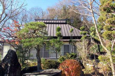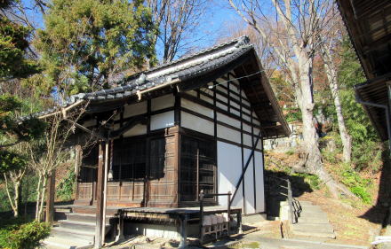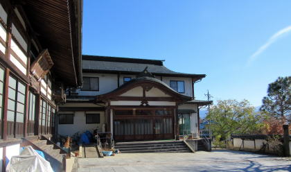 ■江戸前期以降の来歴■ 寺伝によると、この寺は1631年(寛永8年)、石村の寺院、長秀院の4世住職、尊益が退隠してから開創したそうです。その後、衰微したようで、1709年(宝永年間)に近隣の有力家門、横地弥兵衛が田地を寄進して中興開基となったそうです。1847年の善光寺地震で堂宇が倒壊し、1850年(嘉永年間)に再興されたのだとか。現在、境内に残る本堂、観音堂や庫裏または禅堂だったと見られる古い茅葺家屋は、その頃の建築と見られます。