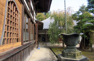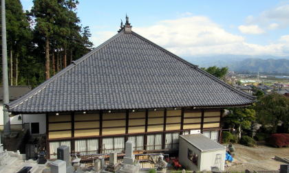 ![]() ▲飯山街道から北にのぼる小径の西脇にある古い石垣が長秀院の目印 ![]() ▲茂吉の先は三念沢で、対岸が殿屋敷と呼ばれる下村氏の屋敷跡 ![]() ▲石垣の横から鬱蒼たる樹林におおわれた参道石段をのぼる ![]() ▲この一見観音堂に見える小堂は何を祀っているのか ![]() ▲観音堂の手前には六地蔵が並ぶ蓋殿。その背後は如意輪観音か。 ![]() ▲北に向かう石畳参道。その脇にも六地蔵堂がある。 ![]() ▲土台も低く小ぶりだが、実に端正で躍動的な結構の鐘楼 ![]() ▲寄棟で質実な本堂: 扁額には長秀禅院という揮毫の荘厳してある ![]() ▲本堂東脇に置かれた庫裏は、入母屋造りで重厚 ![]() ▲大きな寄棟屋根の天辺に小さな大棟。鯱が向かい合う。 ![]() ▲背後の山腹墓苑から境内を見渡す |