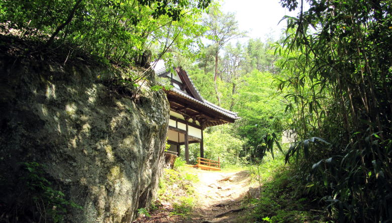 現在では旧街道から東に向けて無量寺の丘の下を通る幅広の舗装道路がありますが、古い時代には、先ほどの門跡の塚から曲がりくねった参道が寺まで導いていたと見られます。